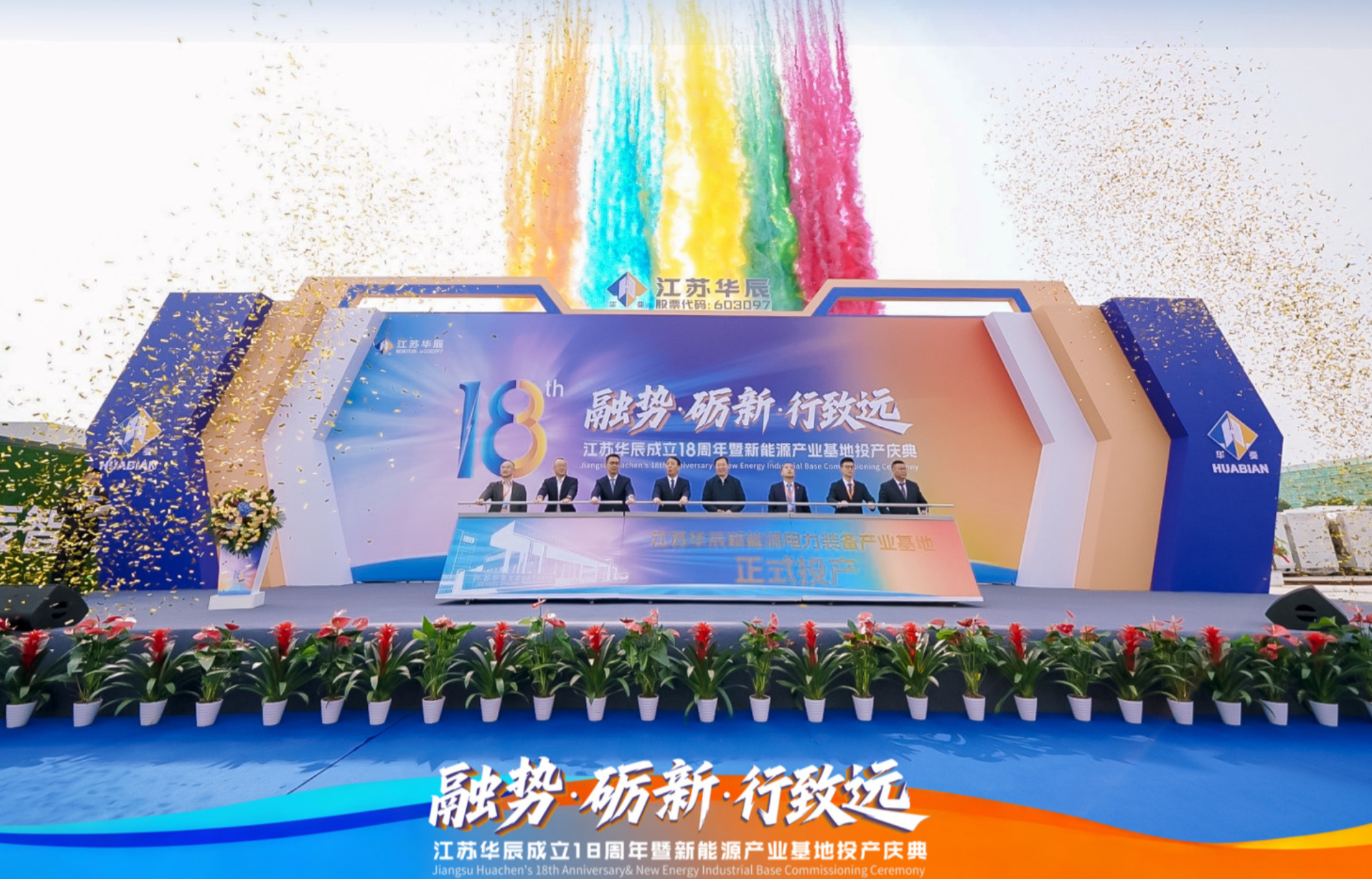 上证报中国证券网讯(记者 仲茜)10月29日,江苏华辰变压器股份有限公司(简称:江苏华辰)迎来企业成立十八周年的喜庆日子。当天,公司通过资本市场募资投建的新能源产业基地正式投产运营。“十八年风雨兼程,十八年春华秋实。”在庆典仪式上,江苏华辰董事长张孝金致辞表示,十八年前,怀揣着梦想和对未来的憧憬,他和伙伴创立了“江苏华辰” 品牌,开启了充满挑战与机遇的征程。“从最初几十个人、几间办公室,开始租场地、购设备、招人员,试生产,到选厂址搞建设,公司逐步搭建基础性的组织架构,十八年来,锐意进取的华辰人团结拼搏、负重奋进,用自己的双手,书写了一部艰难而有意义的创业史。”